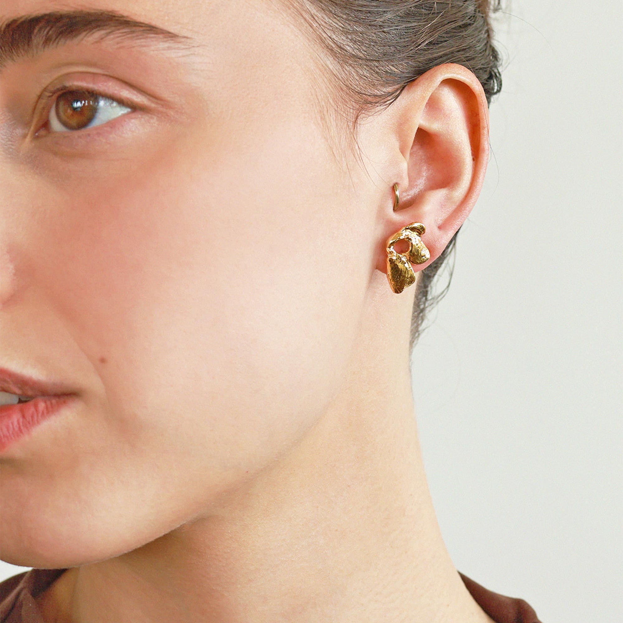 素材:Pewter ピューター(22金メッキ) 長さ:1.5 cm 片方の重さ:2 g ピアス部分はサージカルスティールを使用 色:Gold/シャイニングゴールド