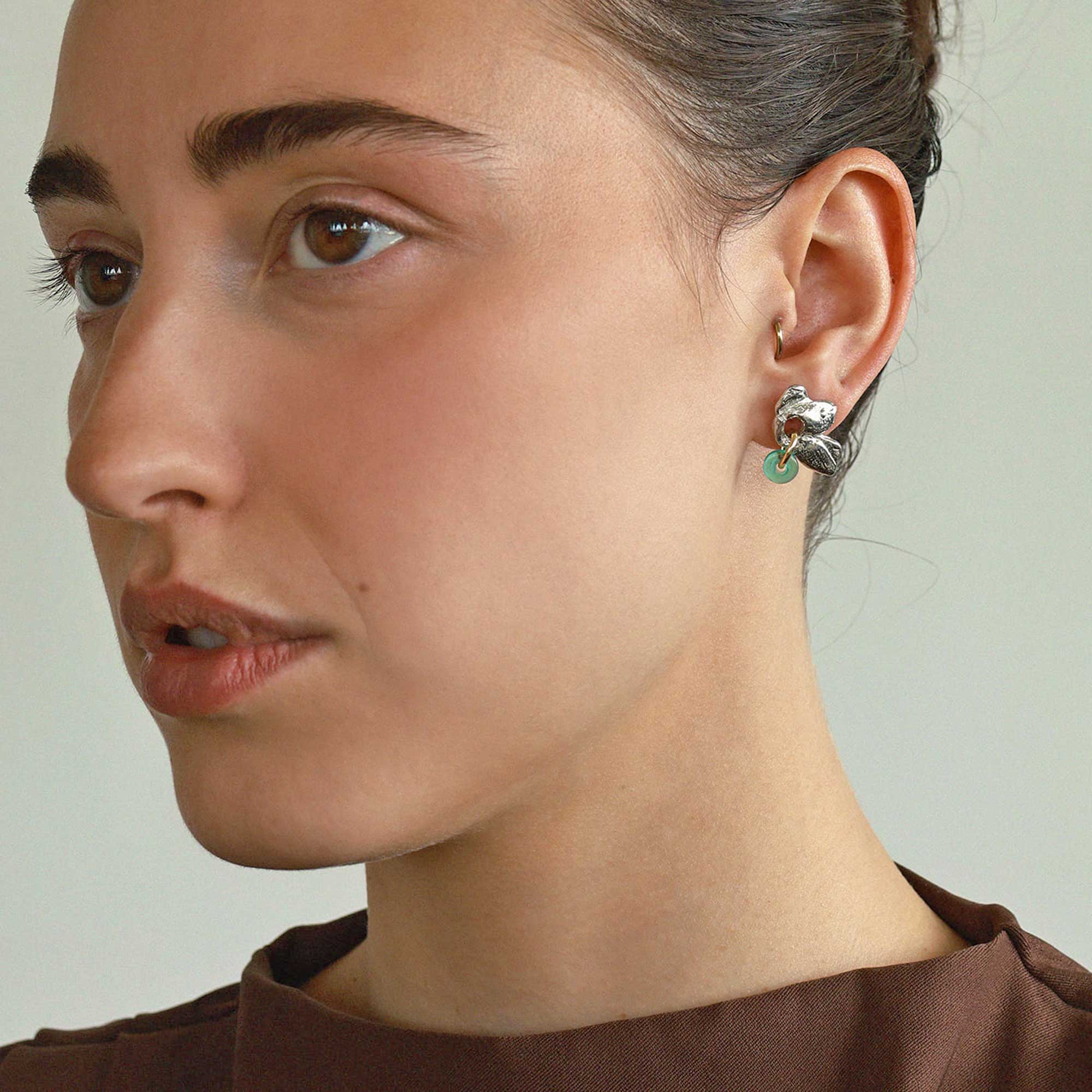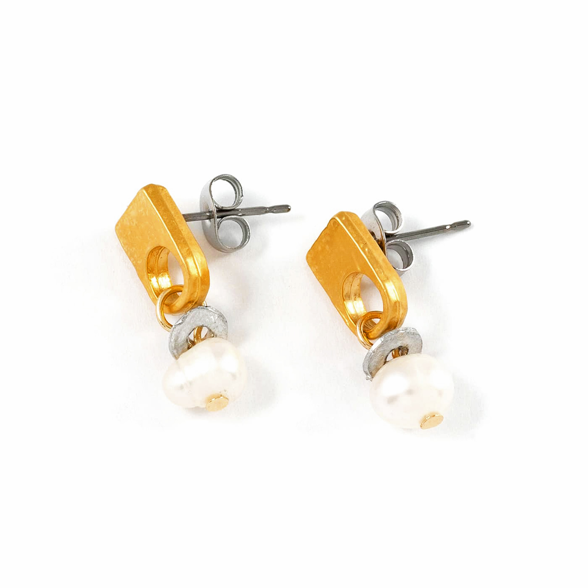 素材:Pewter, Pearl ピューター、淡水パール メッキ:22金 ピアス部分はサージカルスティールを使用 色:Two-tone/シルバー+ゴールド