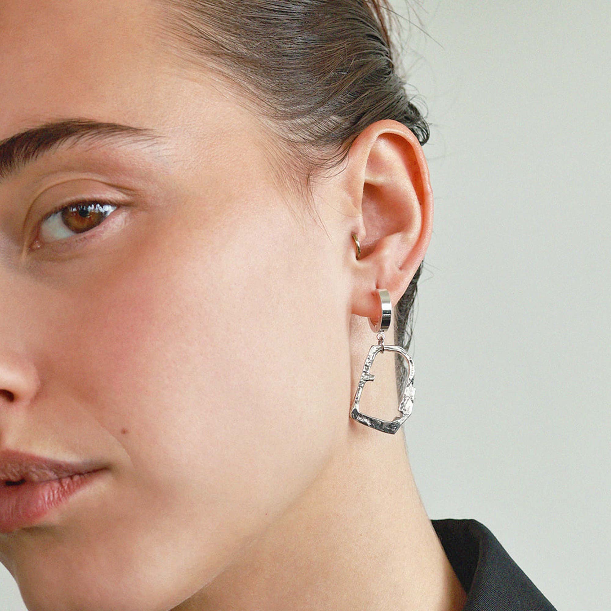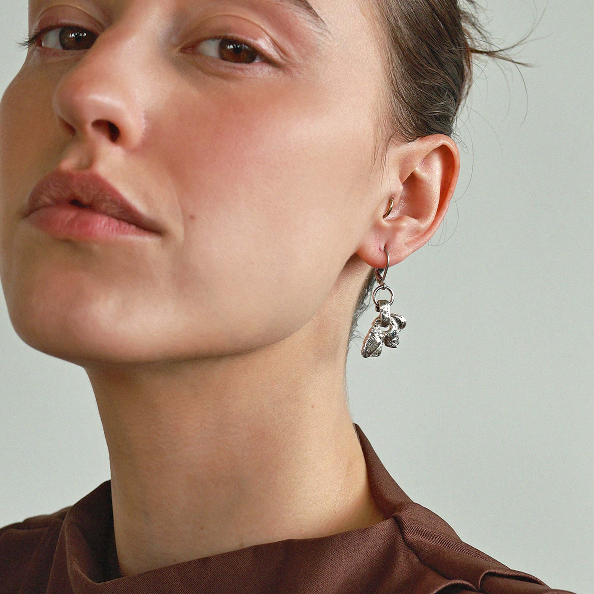 素材:Pewter ピューター 長さ:4 cm 片方の重さ:4 g ピアス部分はサージカルスティールを使用 色:Silver/シルバー