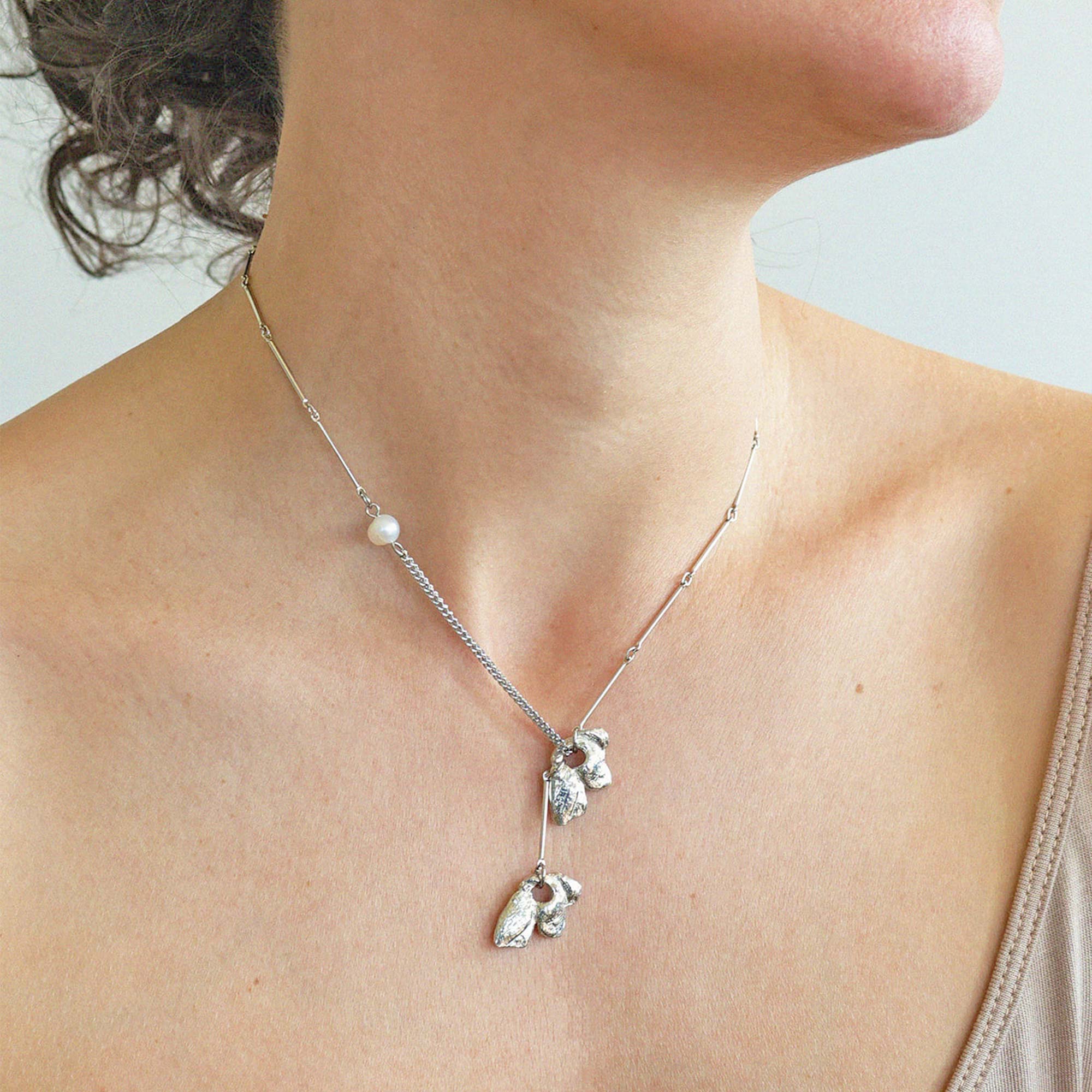 素材:Pewter, Pearl ピューター、淡水パール メッキ:22金 止め金具:ロブスタークラスプ Lobster crimp 長さ:45 cm 色:Silver/シルバー 色:Two-tone/シルバー+ゴールド …