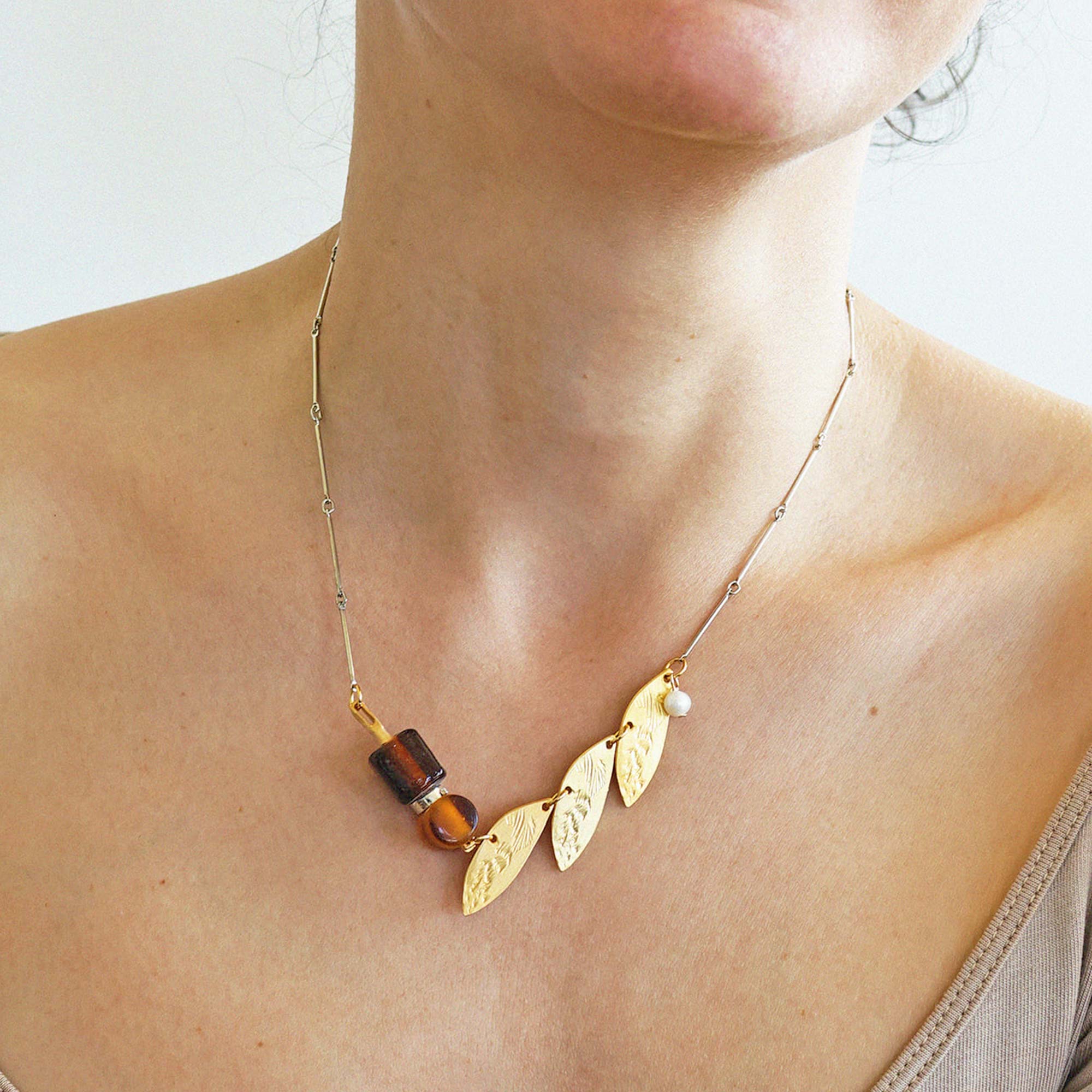 素材:Pewter, Glass, Pearl, Resin, Agate, Jasper ピューター、ガラス、淡水パール、レジン、アゲート(メノウ)、ジャスパー(碧玉) メッキ:22金 止め金具:ロブスタークラスプ L…