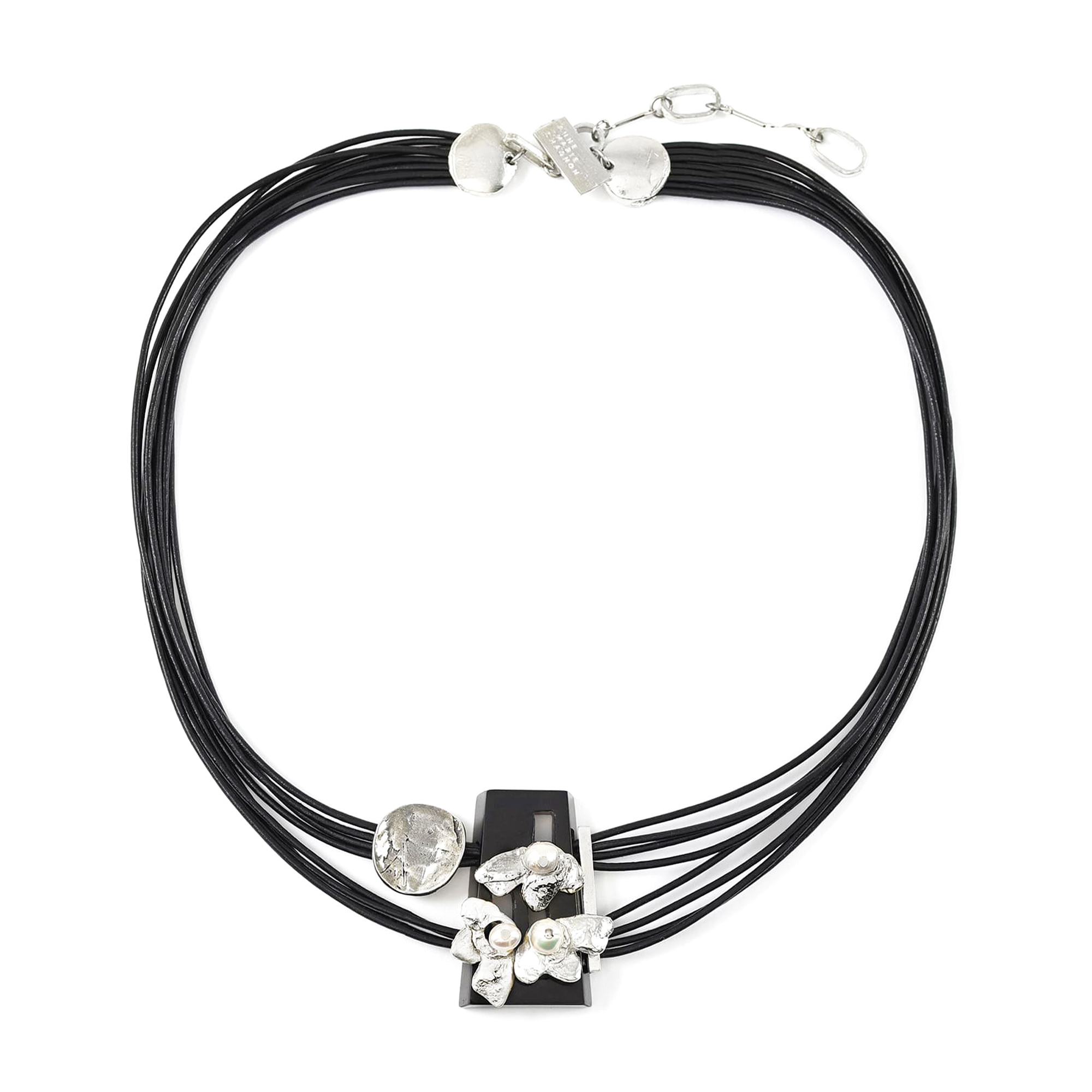 素材:Pewter, Resin, Leather ピューター、レジン、本革 メッキ:22金 止め金具:マンテル Tag bar 長さ:43.5 – 49 cm 色:Silver/シルバー