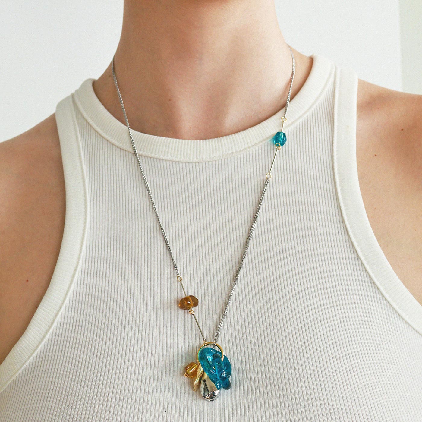 素材:Pewter, Glass, Resin ピューター、ガラス、レジン 止め金具:ロブスタークラスプ Lobster crimp 長さ:46 – 50 cm 色:Rhubarb/ルバーブ(ベ…