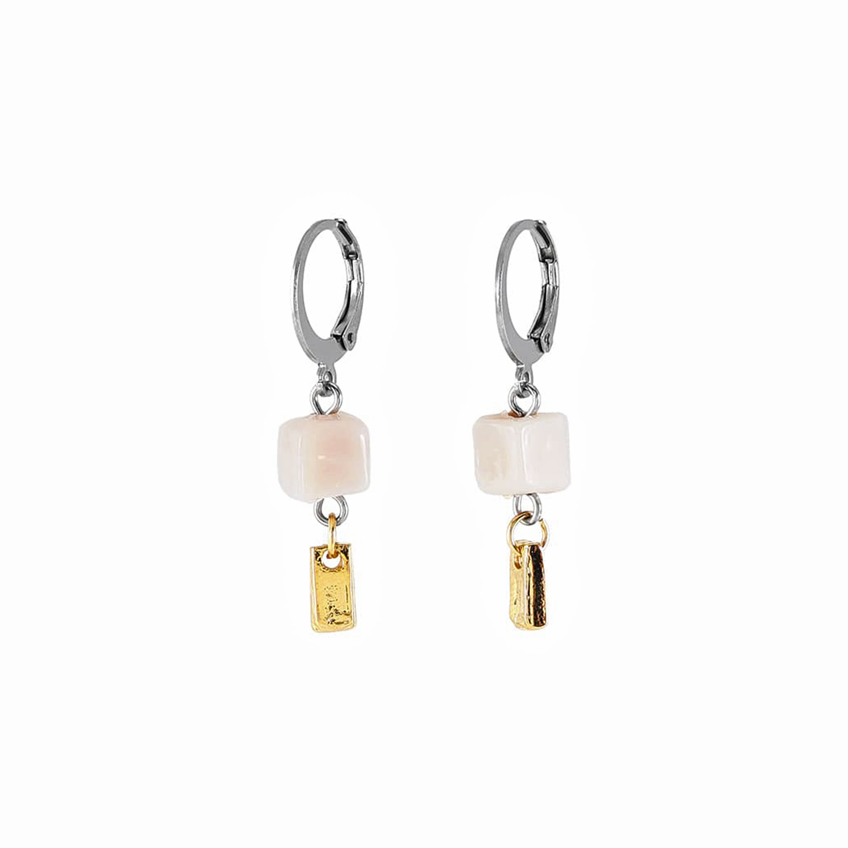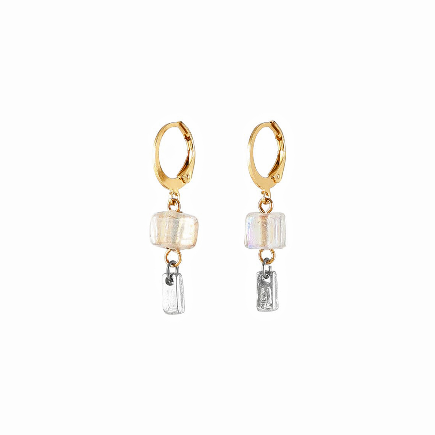 手作り感あるちいさなピューターバーがぶら下がった、ファッションに色を添えるシンプルなイヤリングピアス。