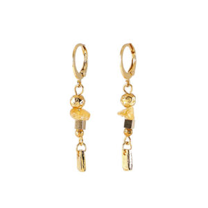 少しゆがんだ輪のピューターメタルの中に、キャンディを模したガラスが下がったイヤリングピアス。