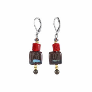 ガラスパーツを積み重ねた、さまざまな服装への合わせやすさと、インパクトを兼ね備えたイヤリングピアス。