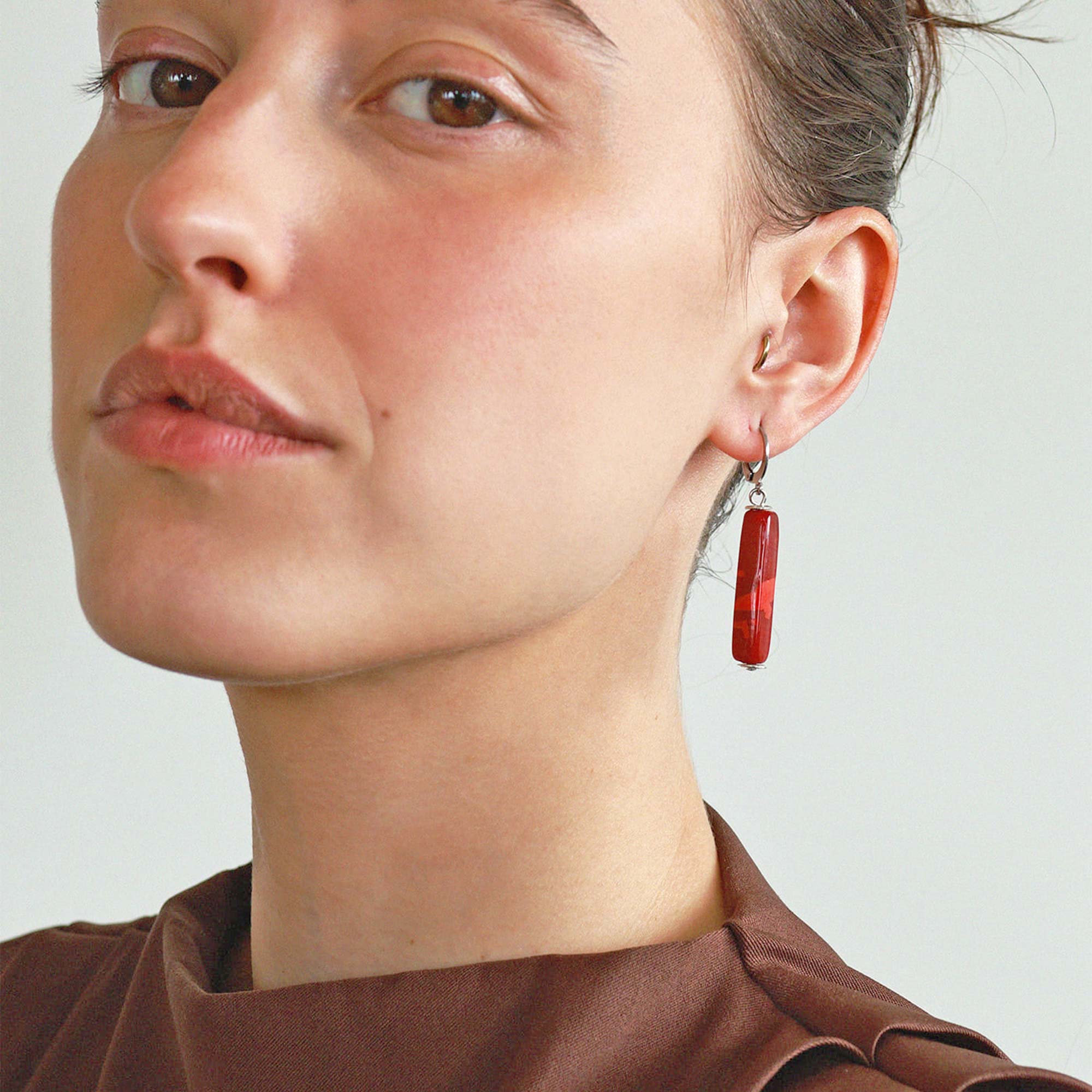 素朴なテクスチュアのガラスが印象的なイヤリングピアス。