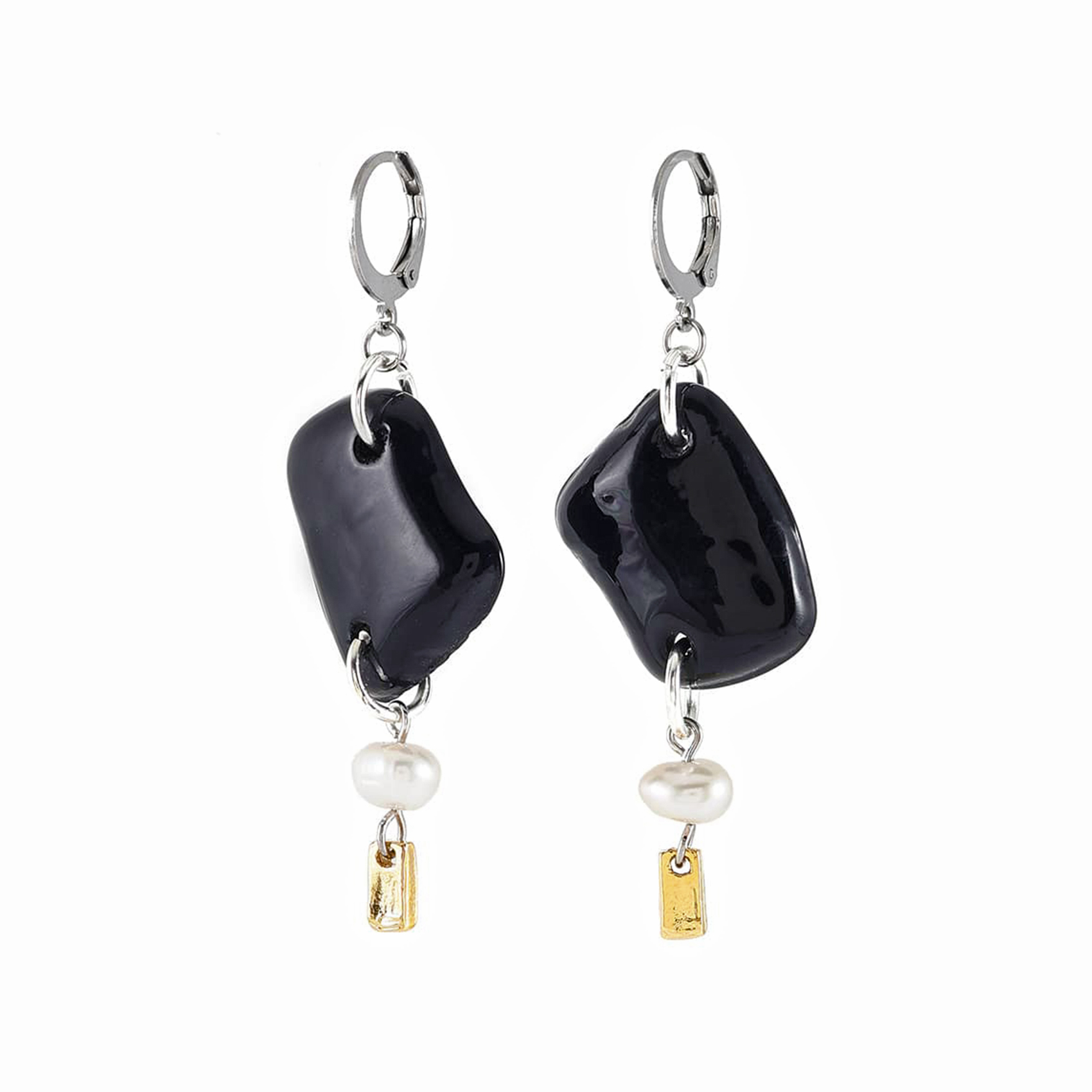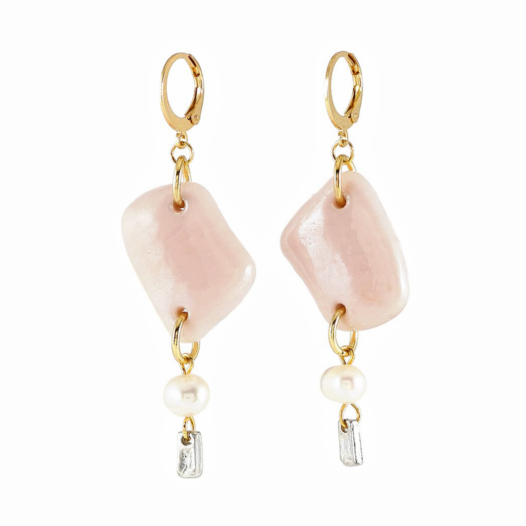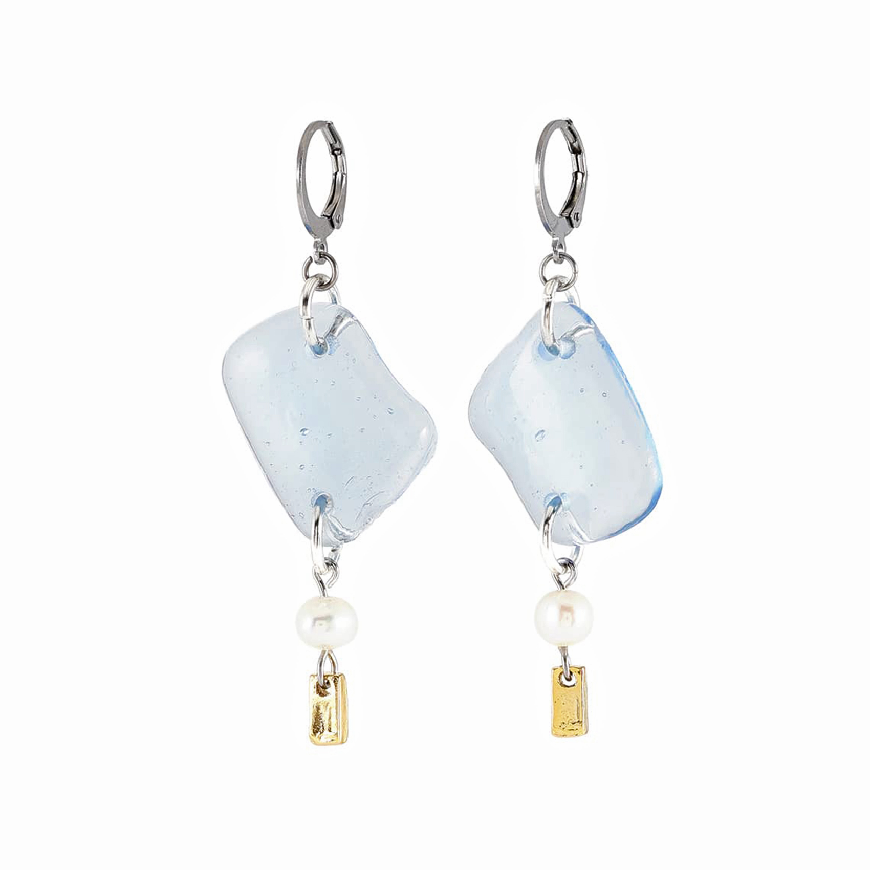 今季コレクションの特徴的な、大ぶりなシーグラス形状のガラスパーツ。長さのある個性的なデザインに、淡水パールが上品さを添えるイヤリングピアス。
