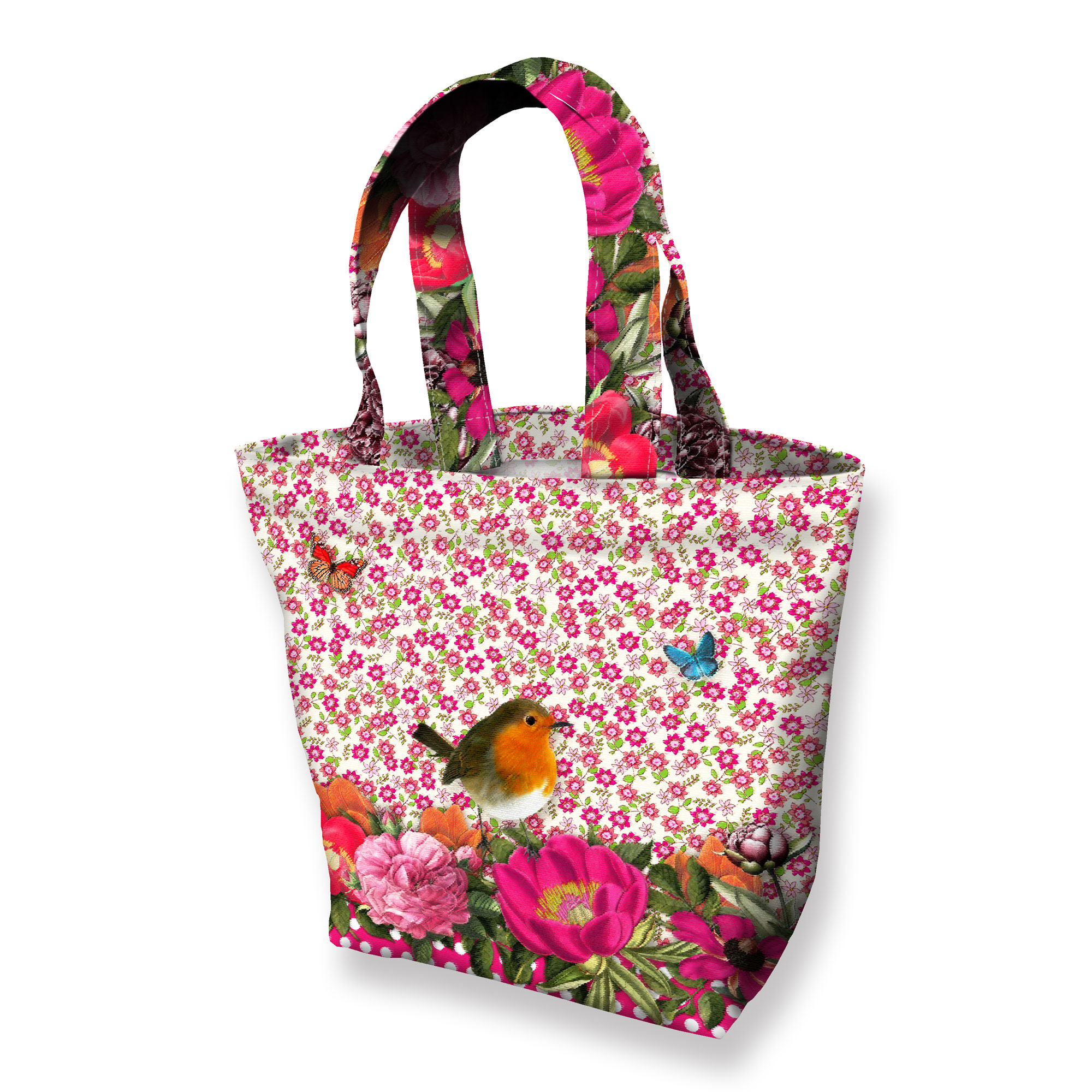 かわいらしい小花柄のリバティプリントに、ボタニカルアートと鳥たちを組み合わせた、多幸感たっぷりのデザインです。